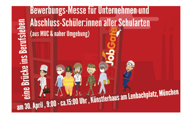 Seit mehr als zehn Jahren bringen wir – die JobGate gGmbH – erfolgreich Unternehmen mit Abschluss-Schüler:innen aus Münchner Schulen auf der JobGate zusammen. Wir organisieren das Messeformat JobGate für die Bewerbung und Vorstellungsgespräche von ausbildungsplatzsuchenden jungen Menschen und den teilnehmeden Unternehmen her, die Auszubildende suchen.